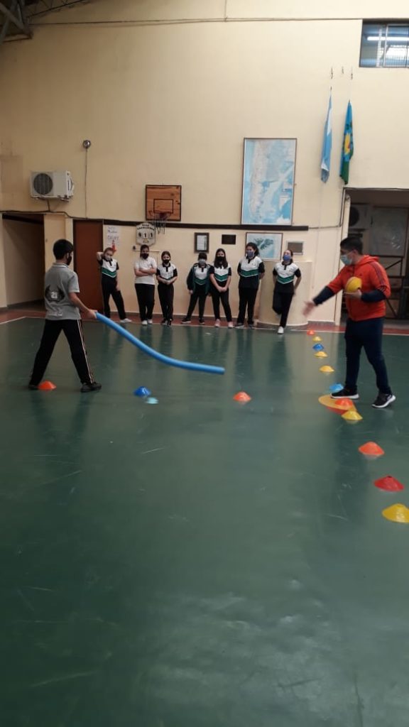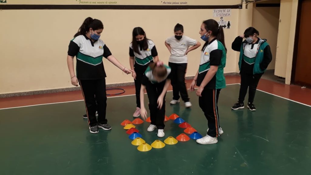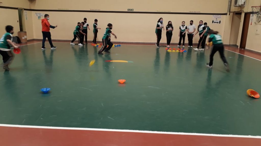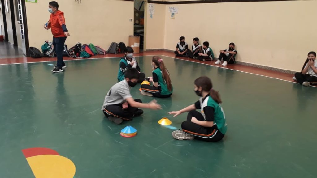 Junto al profesor Matías los estudiantes de 6°D de Primaria realizan unos divertidos y creativos juegos en la clase de educación física