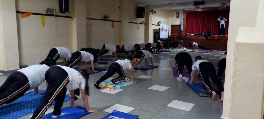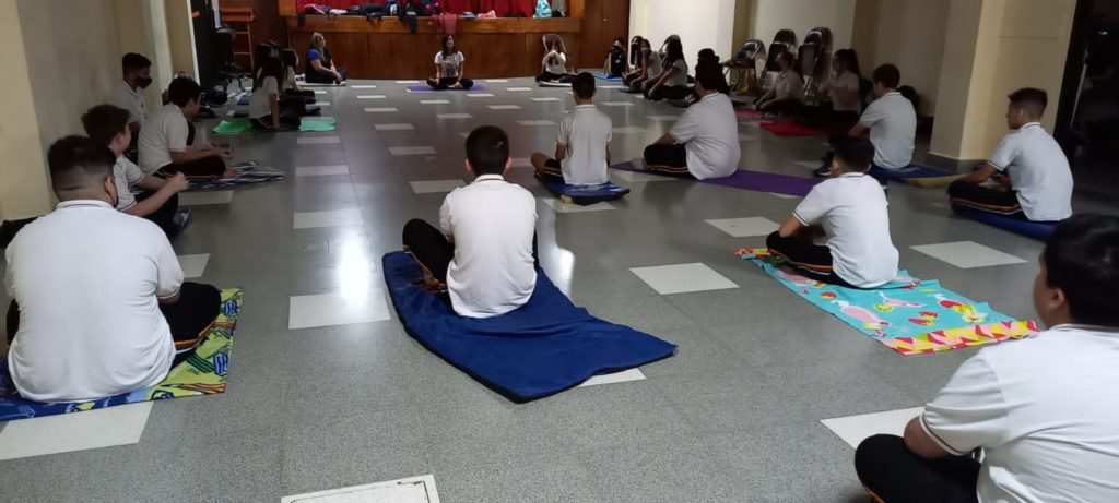 Una clase de yoga muy especial para nuestros estudiantes de Secundaria, un momento para relajarse y despejar la mente durante la jornada de estudio